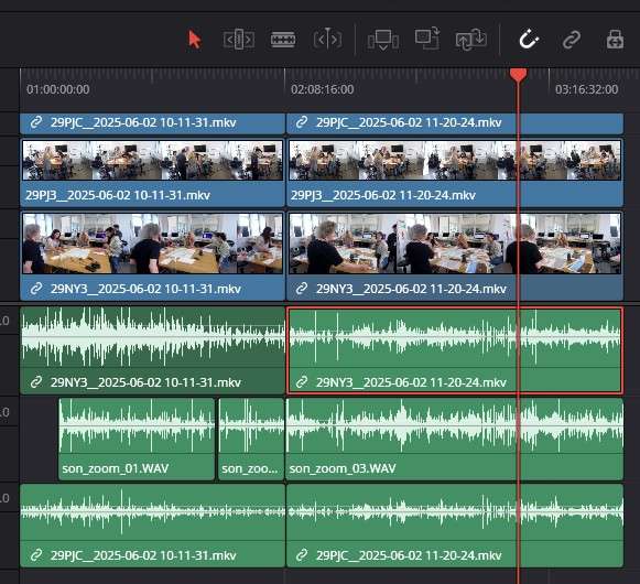 - Arrange your files in the timeline as follows : create one track for each viewing angle, and put the files chronologically