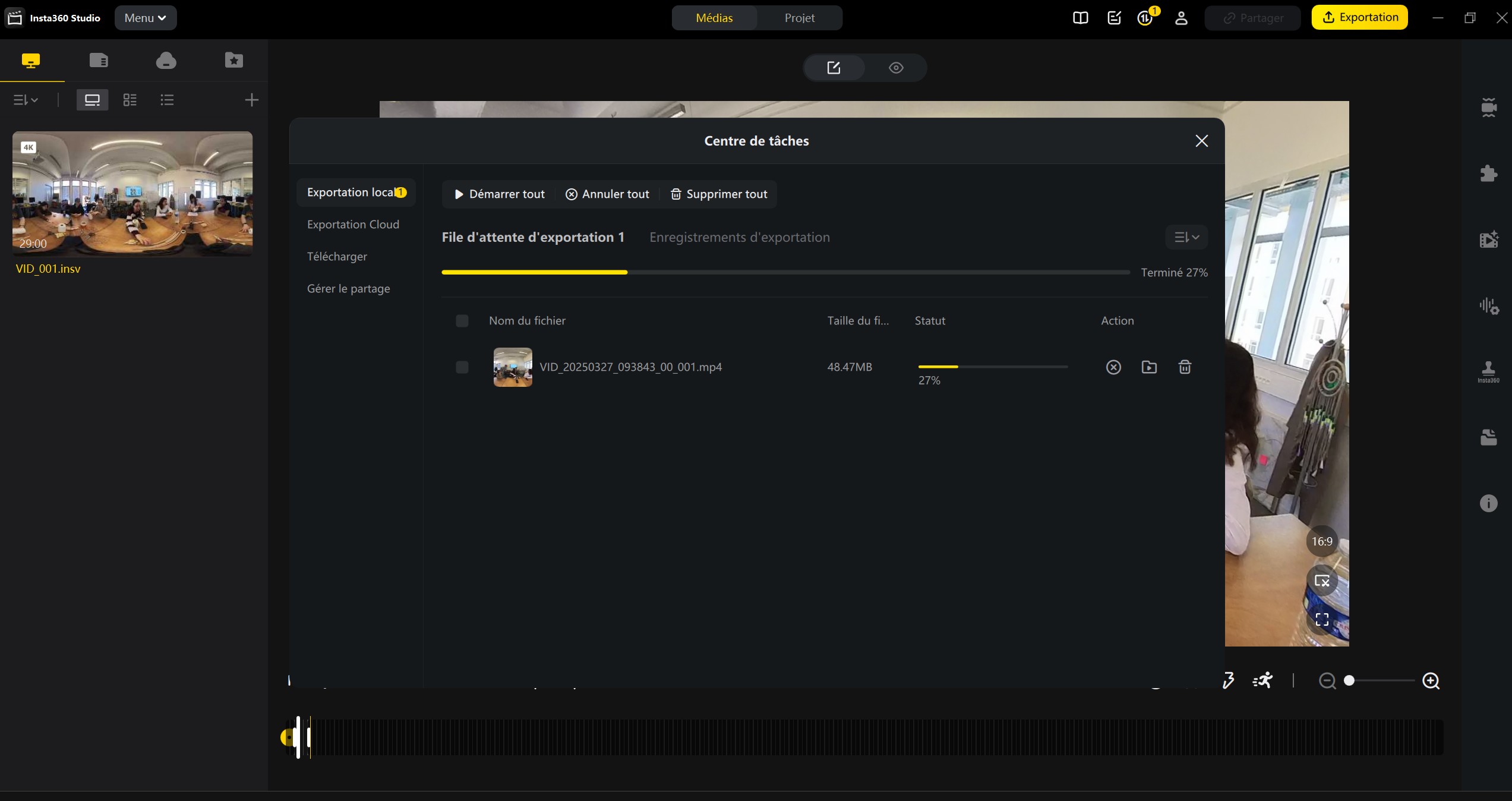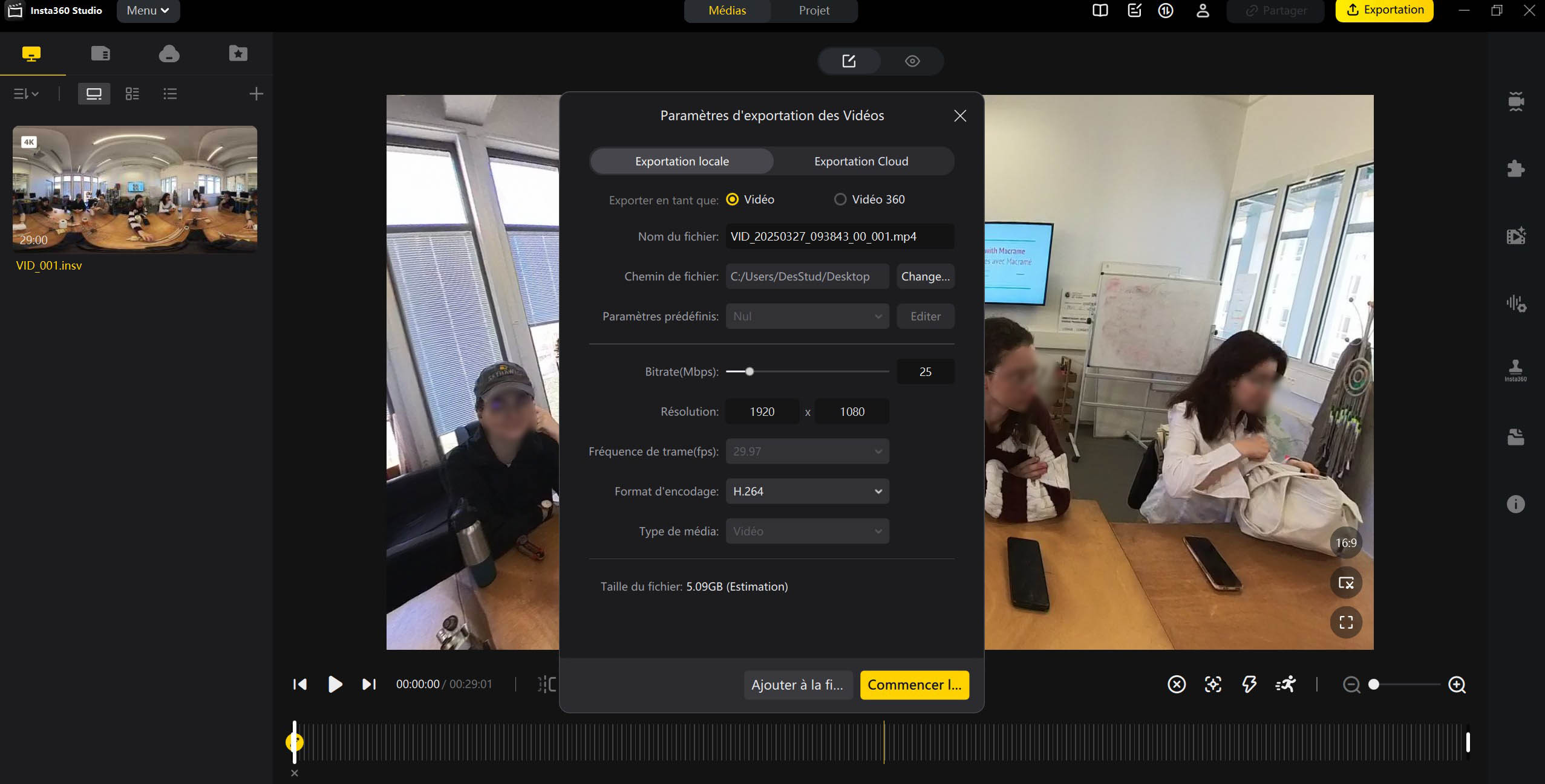 - 360 video files are huge, exporting the viewing angles as normal videos is a good idea to then delete the original 360 files