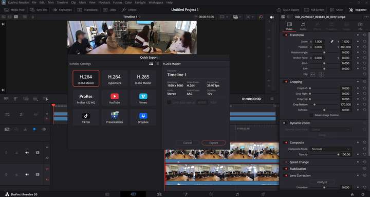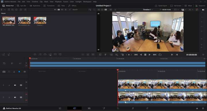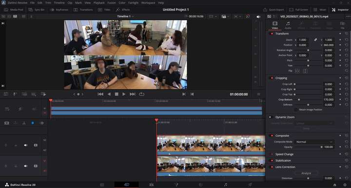 Then, in a video editor such as DaVinci Resolve, you can crop and juxtapoze the different angles you exported, in order to re-export a single video with all the interesting view angles side-by-side.