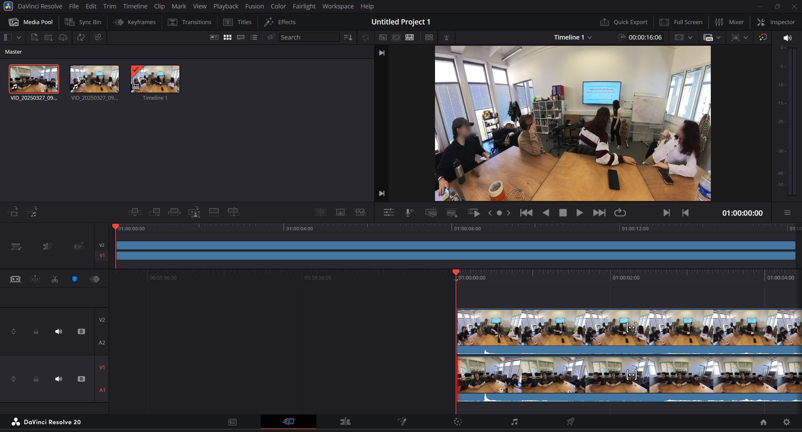 - Fig 4 & 5 - in the “cut” tab of Resolve (you can switch tabs from the bottom icon line on the main screen), create one video track for each angle you have exported and now want to juxtapose, then cut it to remove the parts that are not interesting for your study