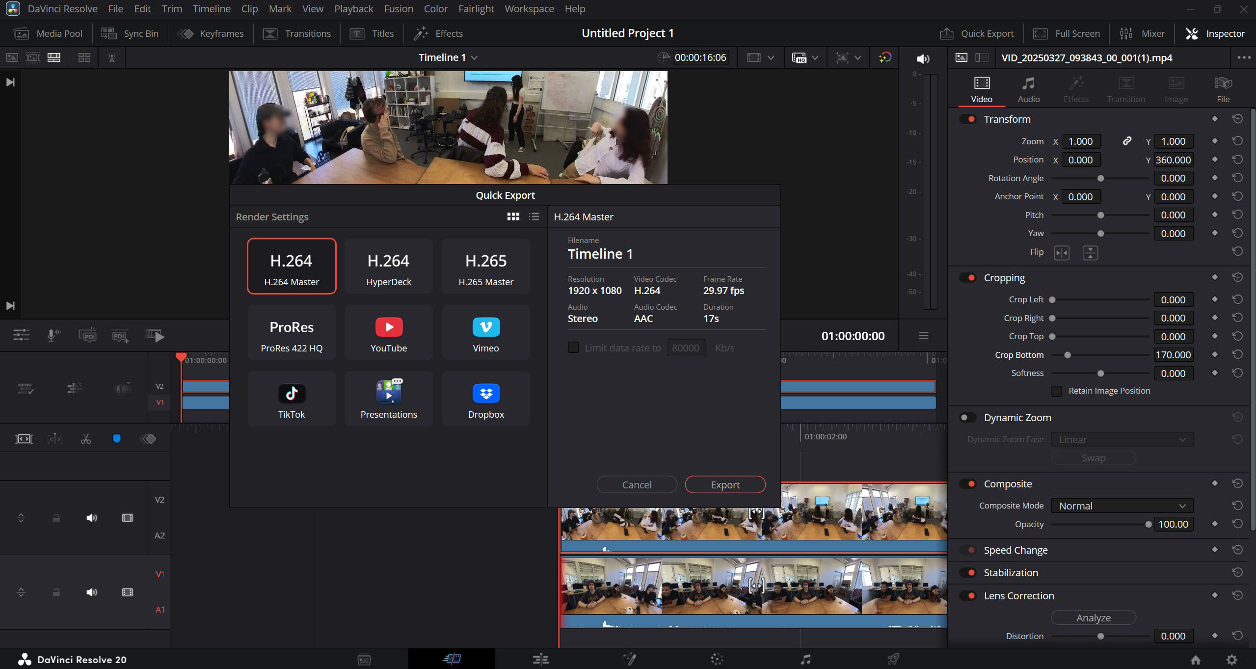 - Fig 7 - go to the “deliver” tab to export your video (h265 with a minimum of 1080p)